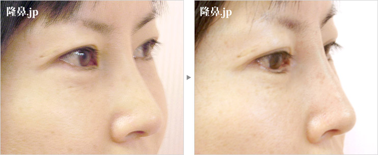 鼻根部が低いということで、ヒアルロン酸注入により治療を希望された症例です。鼻背部及び鼻根部が直線的になるようにヒアルロン酸を注入しました。鼻筋が通りスッキリした印象になりました。東洋人は鼻背部や鼻根部が低いために鼻が広がってダンゴ鼻に見えることがあります。鼻筋を通すことによりスッキリして上品な印象に変わります。近年開発された高品質の注入用ヒアルロン酸は短時間で注入可能で、ダウンタイムも短いために喜ばれています。