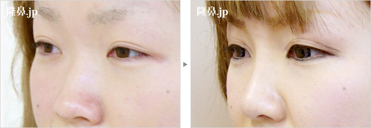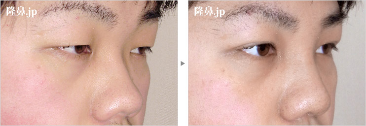 鼻が低く元気がない表情を変えたくて御相談いただいた症例です。鼻根部及び鼻背部が低い鼻を鼻プロテーゼにより高くして、二重埋没法により目を大きくしました。活気がありたくましい印象になりました。鼻が低いと元気が無く間が抜けた感じに見えることがあります。鼻プロテーゼを用いて鼻を高くすることにより、元気で活気のあるイメージにすることができます。印象が良くなったということで喜ばれています。